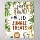 Cute safari or two wild themed birthday party sign featuring five cute watercolor animals, a cheetah print pattern and some foliage.