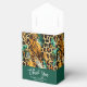 Unveil the enchantment of the wild with these green and gold favor boxes, intricately designed with delicate safari animal fur prints.