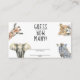 Safari Jungle baby shower invitation featuring a watercolor illustration of a giraffe, leopard, elephant and zebra. "A little wild one is on the way." Matching items available.