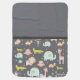 A blanket with a pattern composed of a collection of cute wild animals in a nursery art style - including alligators, monkey, birds, turtles, giraffes, elephants and lions all drawn in pastel colors. Set on a brown background. The center has a circle with your personalized monogram initial inside.
