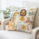 Adorable safari animals pillow featuring giraffe, lion, and cheetah designs. Perfect for adding a playful touch to kids' rooms, nurseries, or playrooms. This cute jungle animals cushion is an ideal decor piece for animal-themed spaces, providing both comfort and charm.