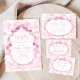 This item blends classic elegance with whimsical charm. The design features a delicate toile de Jouy pattern in soft baby pink, showcasing vintage-style safari animals like elephants, giraffes nestled among floral and leafy details. The intricate linework and gentle color palette give it a timeless, heirloom feel—perfect for a refined and sweet celebration. Accented with elegant typography and frame with bow. This itemeffortlessly blends whimsy, tradition, and grace, offering a beautiful way to welcome a new baby. Matching items available.