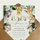 Celebrate the arrival of your little wild one with this adorable Safari Animals Baby Shower Invitation! Featuring hand-painted watercolor jungle animals – including a lion, giraffe, elephant, and zebra – nestled among lush greenery, this invitation brings a playful and elegant vibe to your event. Perfect for baby showers, this design adds charm to any celebration. Easily personalize the details online with Zazzle's user-friendly editor – customize the name, date, time, location, and RSVP info in just a few clicks! Whether you're hosting a virtual baby shower or an in-person gathering, this whimsical safari invitation sets the tone for an unforgettable day.