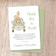 Cute baby shower thank you card featuring a watercolor illustration of baby zoo animals (lion, elephant, zebra, monkey and giraffe) piled into a safari vehicle. Customize your thank you message, add your baby's name and birthdate on the vehicle and your names in a dark grey signature-like script.