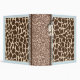 Sweet safari prints of giraffe, zebra, and leopard with novelty trims and giraffe tag and blue accent.