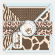 Giraffe, zebra, leopard, cheetah prints with lace trim ribbons and a giraffe and pacifier logo.