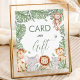 A safari-themed Cards and Gifts sign featuring watercolor jungle animals and tropical greenery. Perfect for directing guests where to place their cards and presents during the celebration. A coordinated addition to Wild One, jungle, or gender-neutral baby shower themes and matching party stationery.