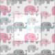 Pink and gray elephants baby girl fabric. Copyright © Decamp Studios