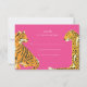 Safari rsvp wedding invitation card features Jungle tiger and leopard. Pink background can be customized to any color by clicking the customize further link.