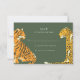 Safari rsvp wedding invitation card features Jungle tiger and leopard. Green leopard print on back.