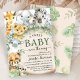 Celebrate the upcoming arrival with our Safari Baby Shower baby shower invitation! The design features a group of adorable jungle animals and rustic tropical greenery leaves, perfect for a unique safari-themed baby shower. Personalize your invites today and start the celebration!
