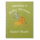 Give your guests the chance to write a special message to the mama-to-be in this safari themed baby shower guest book! Adorable, coordinating jungle animals invite guests to leave personal messages that will allow the new mama to look back and remember her special day for years to come. This safari baby shower guest book coordinates with other products in our store.