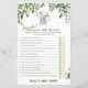 Safari Jungle Elephant Baby Shower Game PRINTED