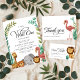 Send a sweet note of gratitude with these Safari Jungle Flamingo baby shower thank you cards. The design features a playful flamingo surrounded by tropical jungle greenery, perfect for a boys’ safari-themed baby shower. A fun and stylish way to thank your guests while keeping the party theme consistent. Personalize with your message for a unique touch.