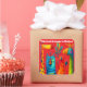 This customizable sticker sparks creativity in your child's space or placed inside a favorite book with vibrant, fun, neon orange, blue and green hues abstract jungle animals with a red background. Designed to bring a burst of color and a playful, positive vibe to any child's books, the