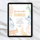 Make your child's birthday party unforgettable with these delightful safari animal birthday party invitation. Each animal is adorned with a cute party hat, enhancing the celebratory vibe. This invitation design perfectly captures the joy and excitement of a child's birthday party, making it an ideal to set a fun and cheerful tone for their celebration.