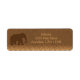 This return address label features your address or other custom text in beige text over a grassy textured looking bacground with a row of tall grass at the bottom. A dark brown elephant silhouette sits to the left of the address.
