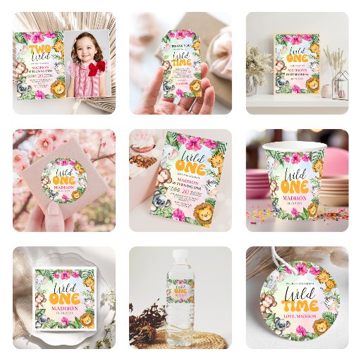 Safari Wild One 1st Girl Birthday Photo Thank You Card