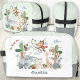 Cute safari the wild one Printed Dopp Kit Toiletry Bag featuring adorable ZOO wild animals in simple Nordic boho style in light green, grey and white. Easily personalize the text. Great for summer, or school, could work also as a soft lunch box and more. - Kate Eden Art