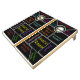 This cornhole set is designed for a social drinking game, featuring a pair of boards with engaging and colorful text-based instructions. Each board has a sleek black background, with vibrant fonts directing players on different actions depending on where their bean bags land. The text is arranged in a grid-like pattern, making it easy to follow and adding a fun challenge to the classic game of cornhole.