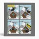 In this short webcomic, the snow just stopped and Ludovico the Blackbird is happy and goes on the top of his house to sing. While singing, an unpredictable event happens... The illustration depicts a bird house hanging from a branch in a winter landscape with snow, pine trees and mountains.