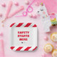 Red and white fire safety paper plates with "Safety Starts Here" and your logo. Fully customizable. You can change the text, put your company logo or delete it. Safety first!