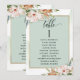 Help your guests find their table with this elegant modern seating plan cards with guests names. Double sided cards so guests can look from both, front or back for their names. Use clips or punch hole for hanging displays, or add to table holder/frames. Design with elegant sage green frame with beautiful watercolor bouquets in dusty rose, terracotta, rust, green and a hint of blue tones and delicate sage green watercolor stains cascading behind frame. Modern hand written calligraphy details. Part of our "Earthy Blooms in Sage Green and Terracotta" collection with a variety of coordinating products available, including table number cards and menus.