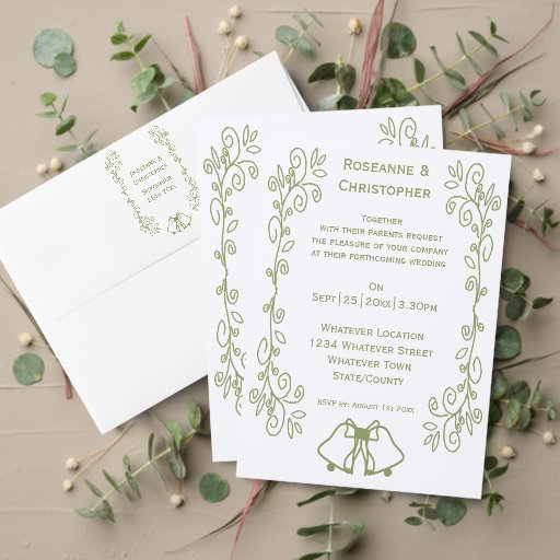 Sage Bells Scrollwork Design Wedding Place Card