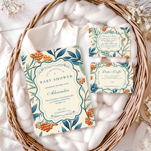 Sage Berry Botanical Baby Shower Invitation