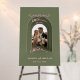 “Romance looks even sweeter in sage and blush.” This Wedding Welcome Sign Foam Board showcases a soft sage backdrop accented with blush pink calligraphy, delicate flourishes, and aesthetic details for a look that’s effortlessly chic and warmly inviting. At the center, a graceful arch‑shaped photo window creates the perfect frame for your favorite couple portrait, making the sign feel less like décor and more like a snapshot of your love story. The pairing of muted green with soft blush strikes a modern yet romantic balance—ideal for spring garden weddings, summer receptions, or bohemian celebrations. With editable fields for names, date, and venue, it’s designed to tell your story with style. Because when the details feel this dreamy, your welcome sign should be unforgettable too.