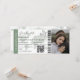 Elegant SAge green monogram boarding pass wedding ticket, a portrait of the engaged couple, a plane with a loop trail, and an easy editable save the date template. Remember to change the text on the back of the monogram.