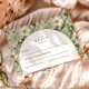 A sophisticated botanical design featuring rich green foliage and soft ivory blooms, framed within a timeless arched layout. The deep, nature-inspired tones bring a sense of depth and refinement, while the clean typography keeps the overall look elevated and effortless.