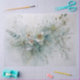 This soft sage botanical paper collage design features layered watercolor florals, delicate lace textures, and airy foliage arranged in an elegant, handcrafted composition. Inspired by vintage botanical journals and paper collage art, the design blends muted greens, creamy blooms, and subtle translucent overlays for a refined yet organic look.