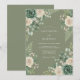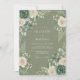 This design features an elegant arrangement of creamy white roses and soft green foliage, evoking a natural and romantic ambiance. Delicate ferns and clusters of small white blossoms add a touch of whimsy to the botanical composition. The subtle color palette creates a refined and timeless feel, perfect for a sophisticated gathering.