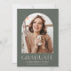 Elegant photo graduation announcement features a vertical or portrait oriented photo in a unique arched layout, on a dark sage green background. "Graduate" appears beneath, along with your graduate's name and school or college. Add a personal message to the back, along with an additional photo.