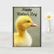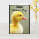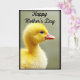 On the front of the card a small young bird fills a tall, vertical layout, shown in profile and turned slightly to the right, as if leaning in with gentle curiosity ❤️. Its feathers are a sunny yellow with soft, downy texture that looks like it would feel warm against your palm, and the tender pose gives it a sweet, friendly presence. One glossy, dark eye stands out like a tiny bead, catching the light in a way that feels like a quiet, affectionate glance. The beak is tinted rose and apricot and sits slightly open, as though it’s about to chirp a tiny greeting. Behind it, a softly blurred wash of muted sage green creates a calm setting, letting the bright bird stay center stage. Near the top, a flowing line of message text is placed above the bird in a darker, contrasting color, easy to spot against the pale background, with a small 🌼 touch that keeps the mood gentle. Subtle natural lighting picks out fine wisps along the feathers, while a soft dark vignette border frames the edges of the scene.