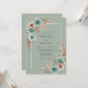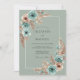 This design features a delicate arrangement of stylized blossoms and foliage in shades of sage green, dusty rose, and pale peach. A subtle, painterly effect lends a romantic and whimsical feel, perfect for an elegant union.