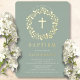 Sage Floral First Baptism Foil Invitation