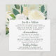 This wedding details card shares reception celebration information, accommodations, and your wedding website in one streamlined insert. Soft watercolor ivory roses and sage greenery create an elegant garden look with easy-to-read typography. Backside features a coordinating full watercolor floral pattern to match the suite. Personalize all wording, venues, hotel info, and URL.