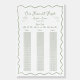 Celebrate your wedding in style with our hand-drawn sage green three long tables and bridal table wedding seating chart signage. This design features my original illustrations of vintage-inspired cupids, bows, wavy borders, and handwritten typography in a whimsical style, a unique addition to your wedding reception. Each table in this template has 40 guests. However, it can easily fit up to 150 guests. You can click the "Edit Using Design Tool" button to move the bridal table and 3 tables up to make more space or reduce the spacing between the lines.