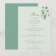 Sage green 5x7 wedding menu card featuring an elegant floral accent and refined script typography. Perfect for displaying your reception dinner selections in a polished and romantic way, this customizable menu card complements garden, cottagecore, and vintage inspired weddings. Designed to coordinate seamlessly with your ceremony and reception day stationery suite.