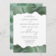 This elegant wedding invitation features watercolor sage green agate trimmed with silver faux glitter at the top and bottom borders. The word "wedding" appears in calligraphic script. Customize the charcoal gray text with the names of the bride and groom and the wedding details. The sage green and silver agate design is repeated on the reverse.