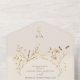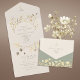This all-in-one wedding invitation offers elegant convenience with a foldable design, RSVP card, and return address in one piece. Set against a soft sage green backdrop, the delicate beige and gold wildflowers add a rustic, botanical charm—ideal for boho, garden, or fall weddings.