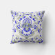 Sage Green and Blue Damask Floral Pattern Elegant Throw Pillow
