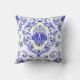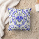 Sage Green and Blue Damask Floral Pattern Elegant Throw Pillow