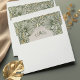 Adorn your wedding correspondence with an extra touch of elegance with our Sage Green and Faux Gold Leaf Envelope Liner. This enchanting design features lush sage green foliage, intricately illustrated to capture the whimsical essence of nature. Each leaf and petal is highlighted with delicate faux gold lines, adding a subtle shimmer that mimics the look of fine gold leaf. The muted green palette is complemented by hints of soft yellow and pale olive, creating a serene backdrop for the initials set within a petite floral emblem. This envelope liner is perfect for adding a refined and personal touch to your wedding invitations, announcing your special day with sophistication and style.
