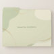 Simple modern pastel tones of shades of sage green organic shapes background accented with organic gold lines. Customizable text/name in darker sage green.