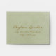 Sage green and gold wedding RSVP return envelope with the name and return address printed on the front in a modern script font. Contact us for help with customization or to request matching or coordinating products.