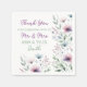 Beautiful personalized wedding cocktail napkins. An elegant watercolor plum purple flowers with sage green and dusty blue foliage and floral design. Add your names and personalize note to thank you guests.