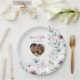 Beautiful personalized wedding dinner paper plates. An elegant watercolor plum purple flowers with sage green and dusty blue foliage and floral design. Add your names photo to these napkins in the personalize area. These are beautiful for a wedding reception dinner or for a bridal shower or bachelorette party.